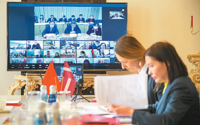 3月13日,中国同中东欧17国举行新冠肺炎疫情防控专家视频会议,分享和交流疫情防控经验及信息。亚尼斯摄(新华社发)