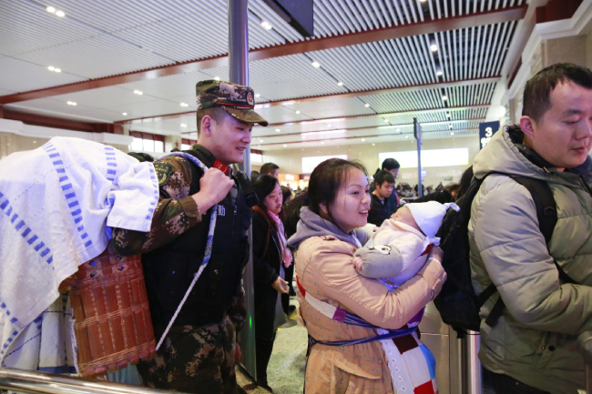 执勤官兵们散落在熙熙攘攘的春运人潮中,一个个橄榄绿色的身影忙碌而又充实。列车伴着春节回家的脚步越来越近,一路有家人的思念,也有中国军人的陪伴。