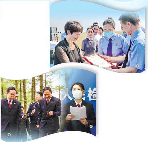 图①:河北省秦皇岛市,工作人员为检察公益诉讼观察员发放聘书。