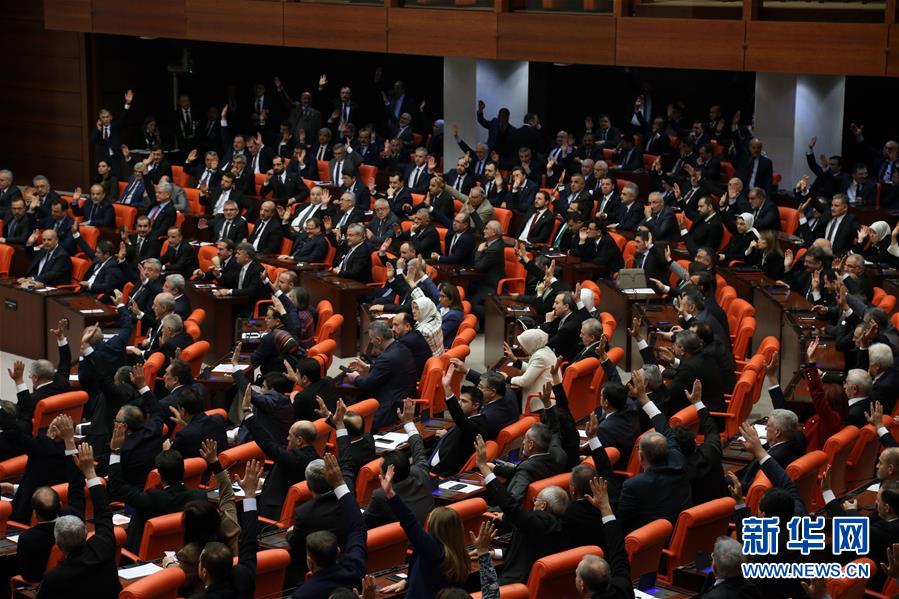 1月2日,在土耳其安卡拉,议员对议案进行表决。新华社发(穆斯塔法·卡亚 摄)
