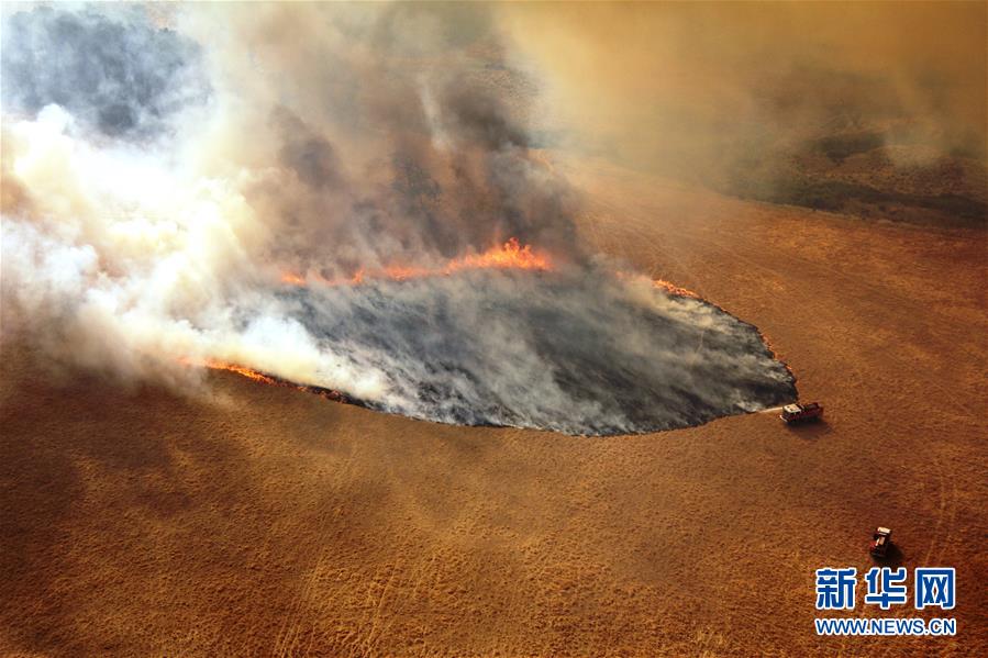 2019年12月20日,在澳大利亚维多利亚州西部,维州消防局消防员在一处火点灭火。新华社发(维多利亚州消防局供图/韦恩·里格斯 摄)