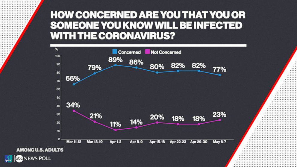 美国广播公司报道,民调显示77%的美国人担心受到病毒感染