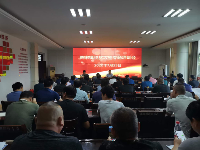 7月23日上午,镇平县贾宋镇召开脱贫攻坚专题培训会,党政班子成员,各村党支部书记、脱贫攻坚责任组组长、驻村工作队长、第一书记、行业主管部门负责人参加了会议。会议由镇扶贫书记王雪峰同志主持。