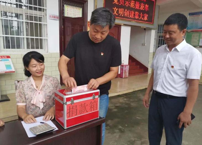 活动在防汛救灾爱心捐款中正式开始。近期,受连续强降雨影响,全国多个地区发生洪水灾害,受灾情况较为严重。洪水无情,人间有爱,一方有难,八方支援。为了帮助灾区群众早日重建家园,回归正常生活,郭店村联合党支部自发组织党员干部和村民群众为灾区群众进行捐款,用实际行动为防汛抗灾奉献自己的一份力量,为坚守在防汛抗洪一线的人员送去一份温暖。