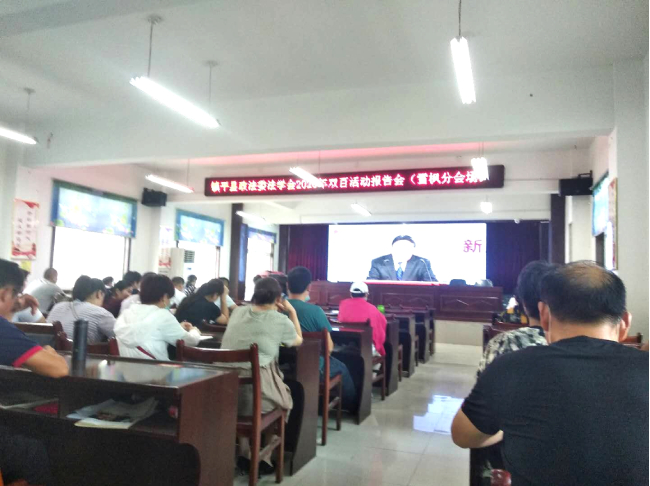7月29日下午,镇平县雪枫街道组织全体机关干部100多人,集中收看2020年“双百”活动报告会。