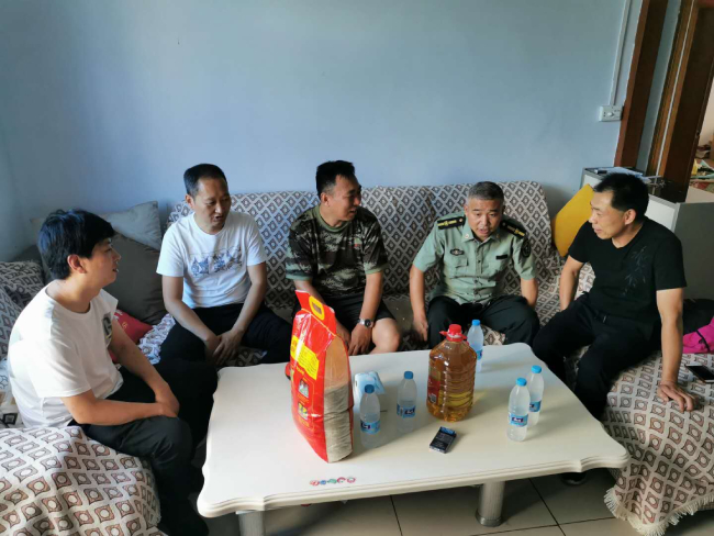 在参战老兵宋全法家中,他们与老人亲切拉家常,听老人讲峥嵘岁月,感谢老一辈为保卫国家、守护家园做出的重大贡献,特别嘱咐老人在高温酷热天气里,要注重静养休息,做好防暑降温,保持良好的健康状态。在陈同悦等现役军人家中,向其家属致以节日问候,并表示会积极为他们排忧解难,解决生活中的困难,让他们的亲人可以安心在部队服役。