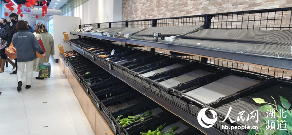 31日下午2点半积玉桥附近的中百超市蔬菜货架已售空