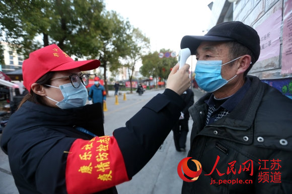 “阿姨,请出示一下您的出入证。”2月15日,在扬州市广陵区文峰街道银泰雅苑小区门口,一名年轻的疫情防控志愿者正在认真检查出入居民的证件。