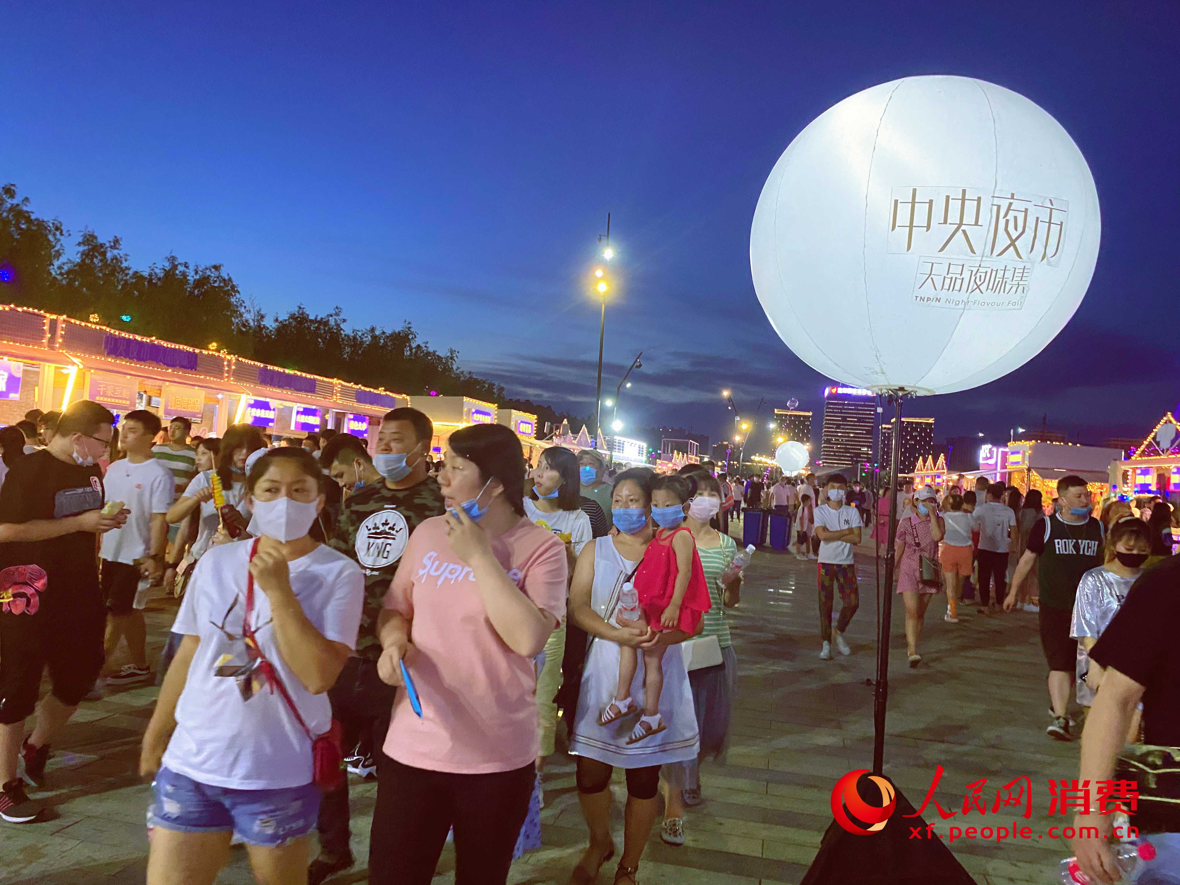 6月20日,消费者在山东烟台某购物广场夜市选购商品。