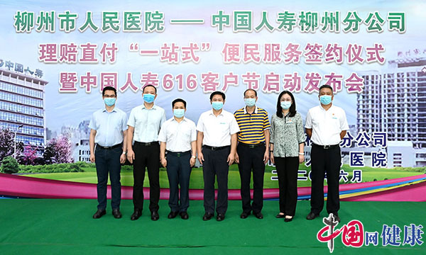 6月16日上午,柳州市人民医院-中国人寿柳州分公司理赔直付“一站式”便民服务签约仪式在柳州市人民医院门诊大厅举行。中国人寿柳州分公司总经理、柳州保险协会会长盘仕国,柳州市人民医院院长杨建青、副院长王晓源、总会计师何志洪,以及中国人寿、柳州市人民医院职能科室相关人员参加仪式。仪式由王晓源副院长主持。杨建青院长和盘仕国总经理先后致辞。