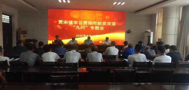 8月12日上午,镇平县贾宋镇召开学习贯彻市脱贫攻坚“九问”专题会。镇班子成员、脱贫责任组长、村支部书记、驻村第一书记60余人参加了会议。会议由镇长邢新峰同志主持。