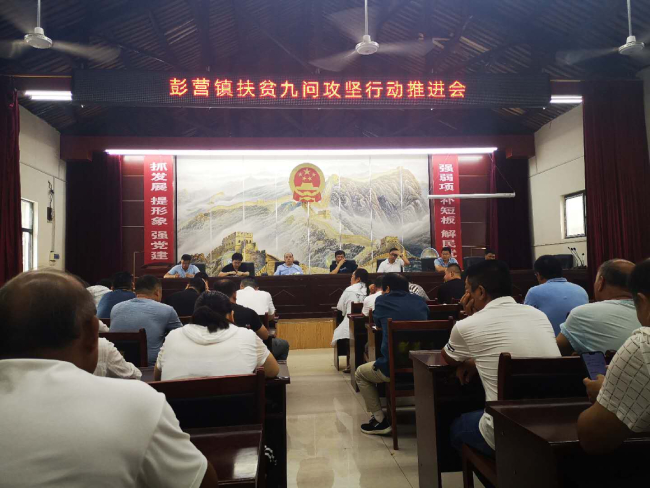 8月13日上午,镇平县彭营镇召开扶贫“九问”攻坚行动推进会。镇机关全体干部、各村支部书记、驻村第一书记、扶贫专干参加了会议。