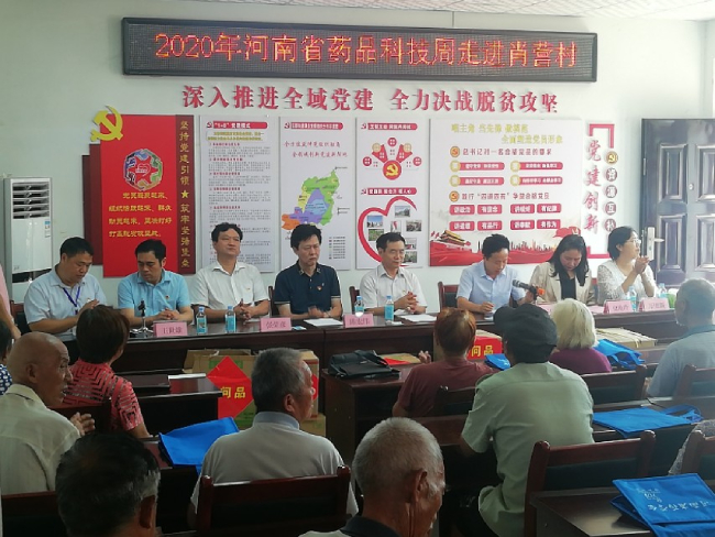 8月28日上午,由河南省药监局驻肖营村第一书记侯群华联系的2020年河南省“药品科技活动周”系列活动——“脱贫攻坚正当时 医药科技共助力”药品科普进乡村大型义诊义演、科普咨询活动在镇平县玉都街道肖营村隆重举办。