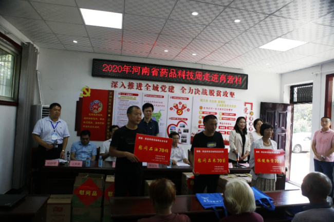 河南省药监局党组书记雷生云、河南省药学会副理事长兼秘书长史艳玲、以及河南省药监局靖安涛、侯群华、省药学会贺霞、南阳市中心医院院长万里新、参加了此次科普活动,肯定了镇平药监工作的成绩,表扬了玉都街道扶贫工作的成效,还带来了组织的关心与厚爱,向肖营村及部分困难群众捐赠了食品和药品。