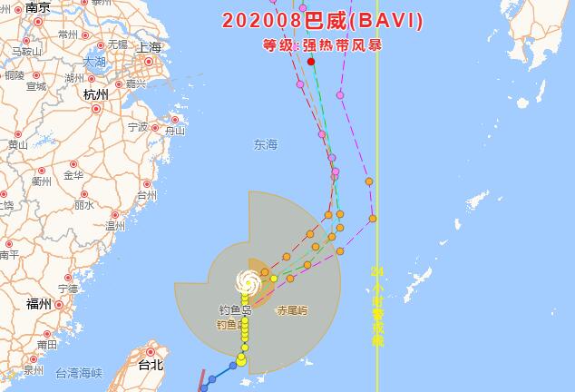 受“巴威”影响,23日8时至24日8时,巴士海峡、台湾以东洋面、东海大部、钓鱼岛附近海域、台湾岛东部和北部沿海、福建北部沿海和浙江沿海将有6-7级大风,其中,东海东南部的部分海域风力有8-10级,台风中心经过的附近海域风力可达11-13级,阵风14-15级。